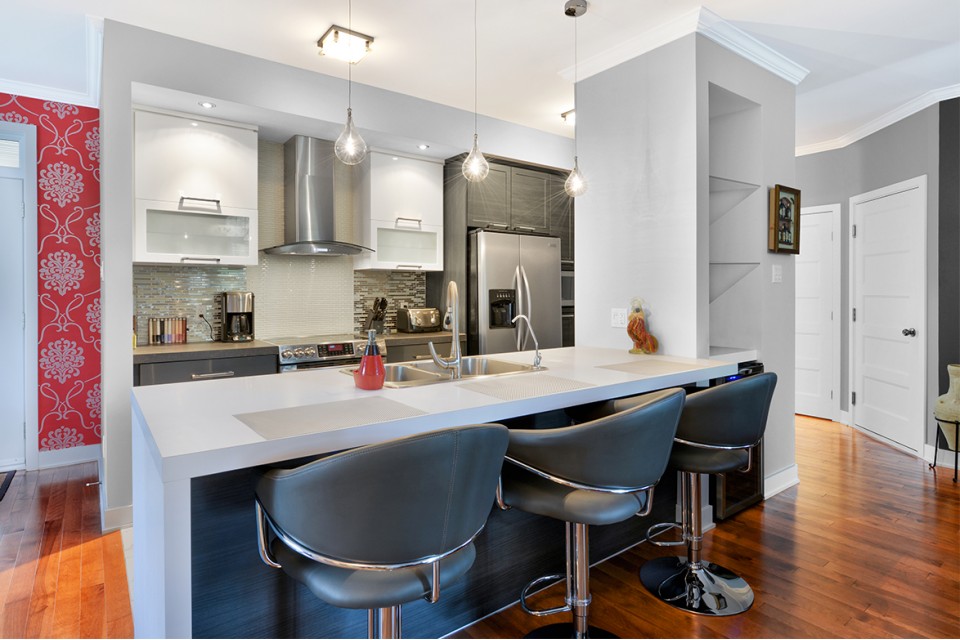 It is available in a wide choice of finishes and gives you access to a very large selection of door models. While hardwood is costly, thermofoil constitutes an affordable choice with a good price/appearance ratio for your next kitchen cabinets.