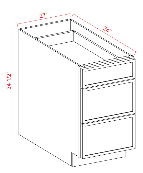 Charleston White 3DB27: 3 Drawer Base Cabinet: Assembled Kitchen Cabinets