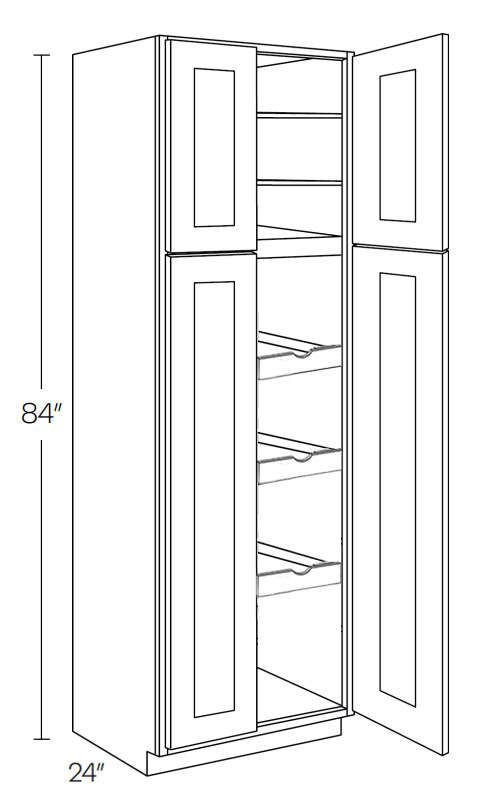 Elegant Smoky Grey UC3024X84-POS3: Utility Cabinet With 3 Pull Out Shelves: Assembled Kitchen Cabinets
