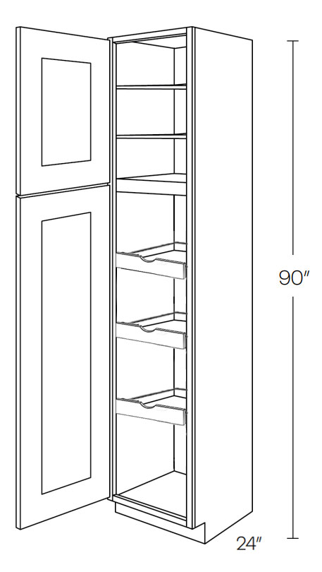 Elegant Stone UC1524X90L-POS3: Left Utility Cabinet With 3 Pull Out Shelves: Assembled Kitchen Cabinets