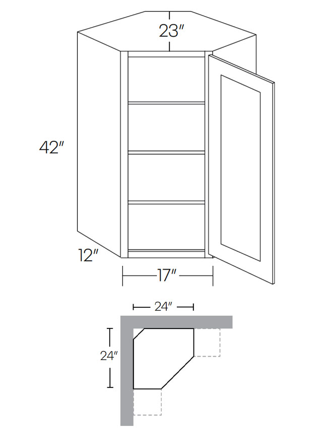 CW2442: Diagonal Corner Wall Cabinet