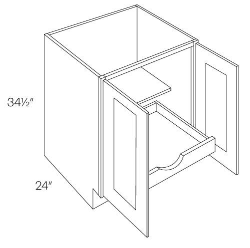 • Full height doors will have a larger reveal on the bottom & will not align with other base cabinets