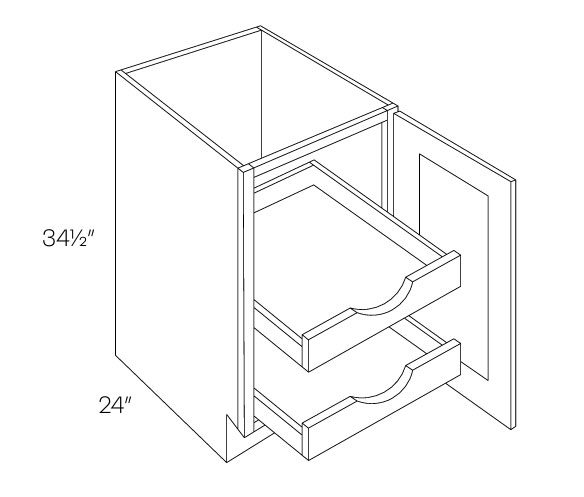 • Full height doors will have a larger reveal on the bottom & will not align with other base cabinets
