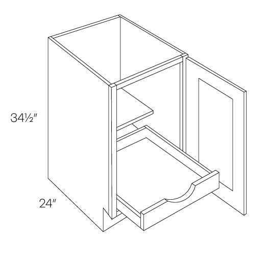 • 1 door, 1 shelf (10"D), 1 pull out shelf