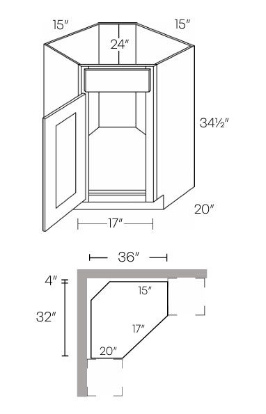 CSB36L: Left Diagonal Corner Sink Base Cabinets