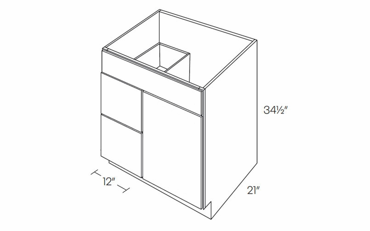 Milano Polar White (Gloss) V30DL: Vanity Base Cabinet, Left Drawers: Assembled Kitchen Cabinets