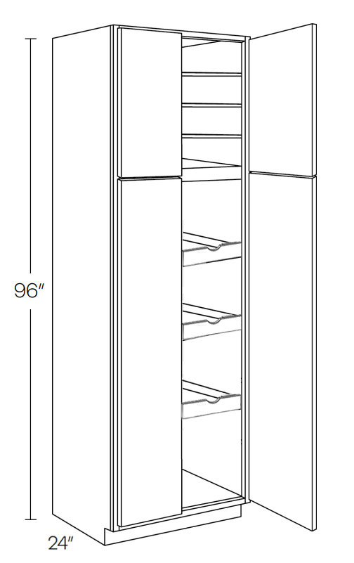 Milano Seaside (Matte) UC2424X96-POS3: Utility Cabinet With 3 Pull Out Shelves: Assembled Kitchen Cabinets