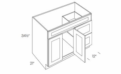 Richmond White V42DR: Vanity Base Cabinet, Right Drawers: Assembled Kitchen Cabinets