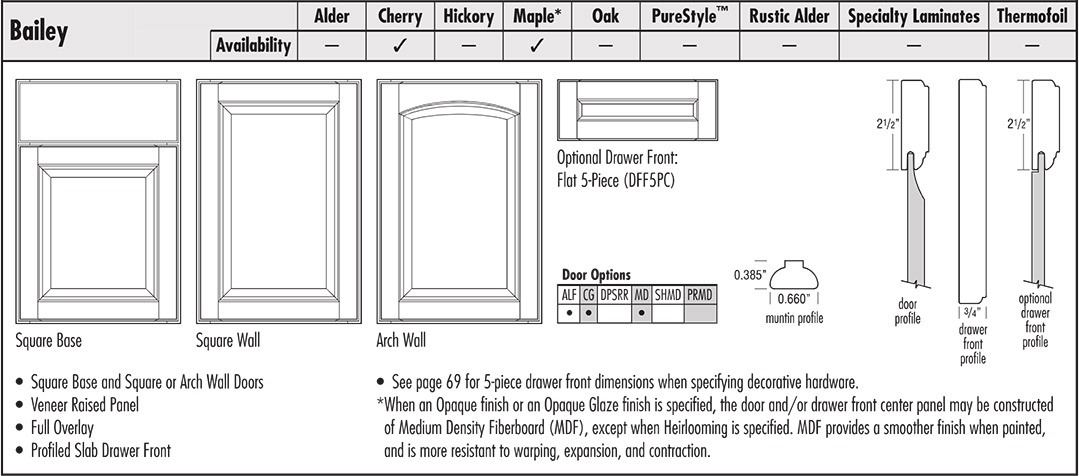 • Square Base and Square or Arch Wall Doors • Veneer Raised Panel • Full Overlay • Profiled Slab Drawer Front
