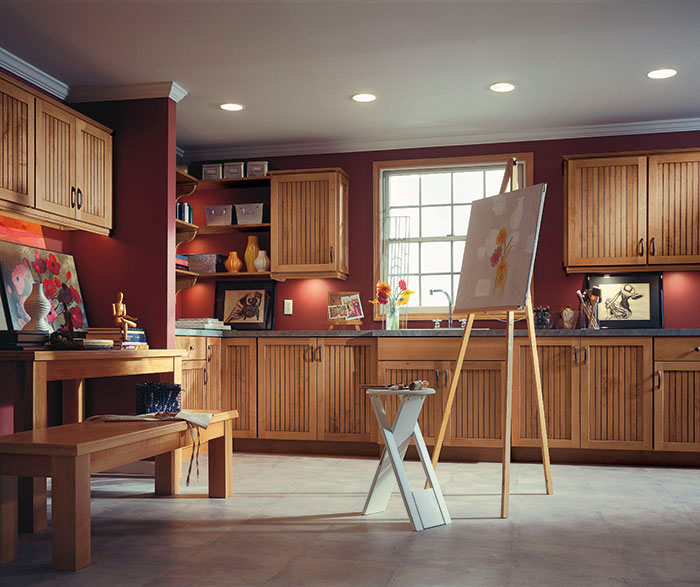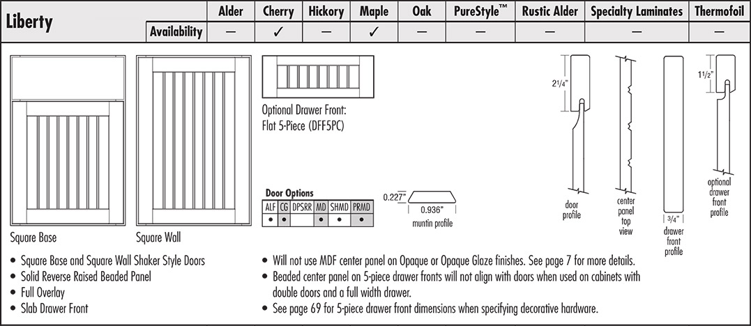 • Square Base and Square Wall Shaker Style Doors • Solid Reverse Raised Beaded Panel • Full Overlay • Slab Drawer Front
