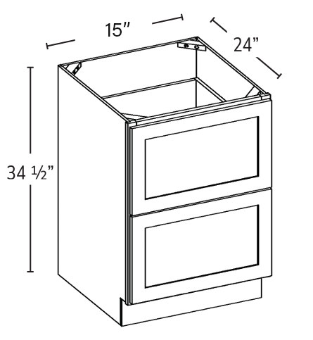 Homestead Oak Shaker 2DB15: 2 Drawer Base Cabinet: RTA Kitchen Cabinet