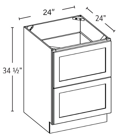 Homestead Oak Shaker 2DB24: 2 Drawer Base Cabinet: RTA Kitchen Cabinet