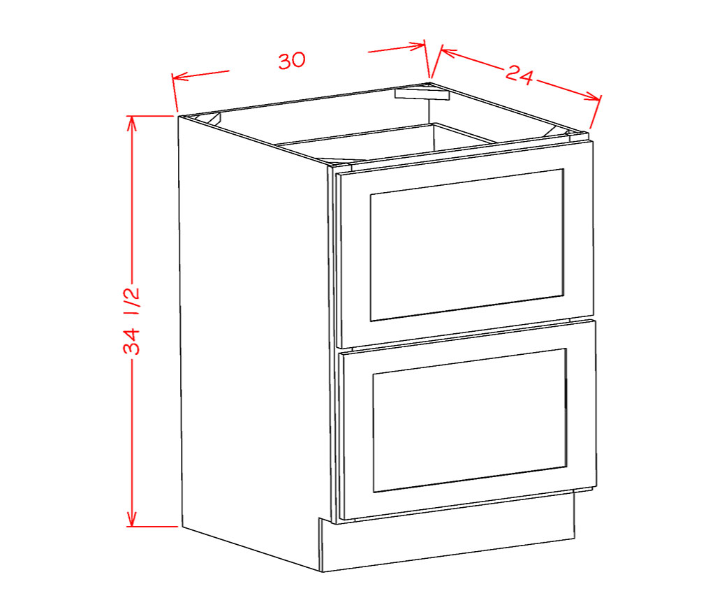 Forevermark Woodland Brown Shaker 2DB30: 2 Drawer Base Cabinet: RTA Kitchen Cabinets