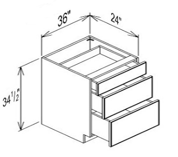 Innovation Imperial Blue DB36-3: Drawer Base Cabinet: RTA Kitchen Cabinet