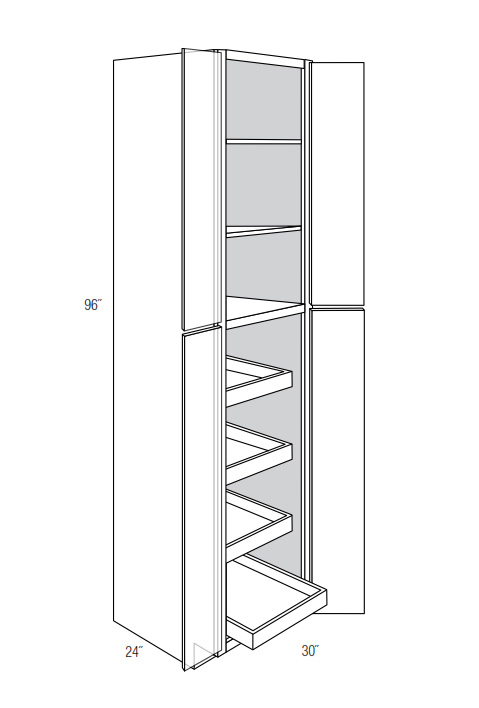Dover Driftwood WP3096BSCRT: Tall Cabinet With Soft-Close Rollouts: RTA Kitchen Cabinets