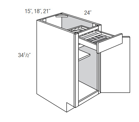 B18TTCD18: Single Door Base Cabinet With 2 Tier Cutlery Drawer