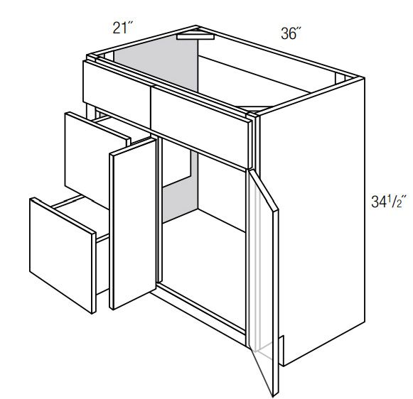 V3621D-L: Left Drawer Bathroom Vanity Cabinet: Dover RTA Kitchen Cabinet
