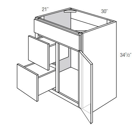 • 30"W x 21"D x 34-1/2"H - 1 Door, 2 Left Drawers
