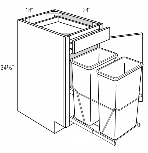B18TR: Double Trash Bin Base Cabinet: Essex Norwich RTA Kitchen Cabinet