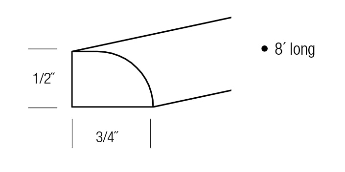 • 96"W x 3/4"D x 1/2"H