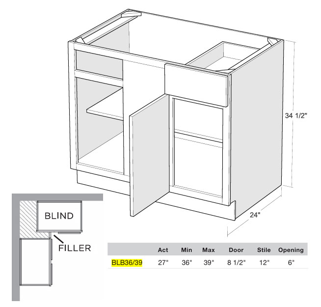 BLB36/39-L: Blind Base Cabinet (Left Hinge Door)