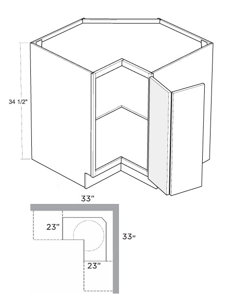 BSQC33-R: 33" Square Corner Base Cabinet (Right Hinge Door)
