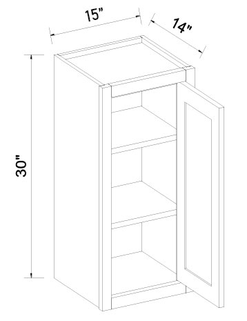Inset White Shaker W1530: Single Door Wall Cabinet: Assembled Kitchen Cabinets