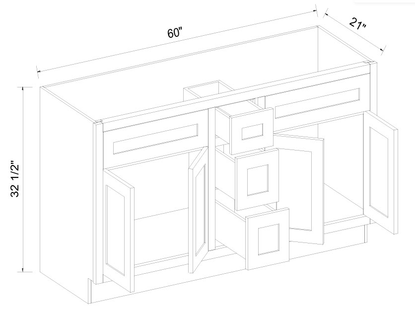 VCD6021: Center, Right & Left Side Drawer Vanity Cabinet