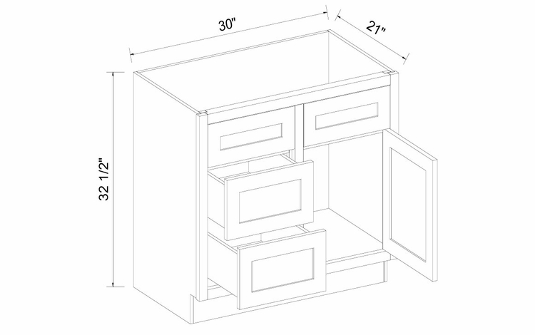 VSD3021L: Left Side Drawer Vanity Cabinet
