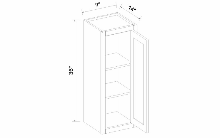 Inset White Shaker W0936: Single Door Wall Cabinet: RTA Kitchen Cabinets