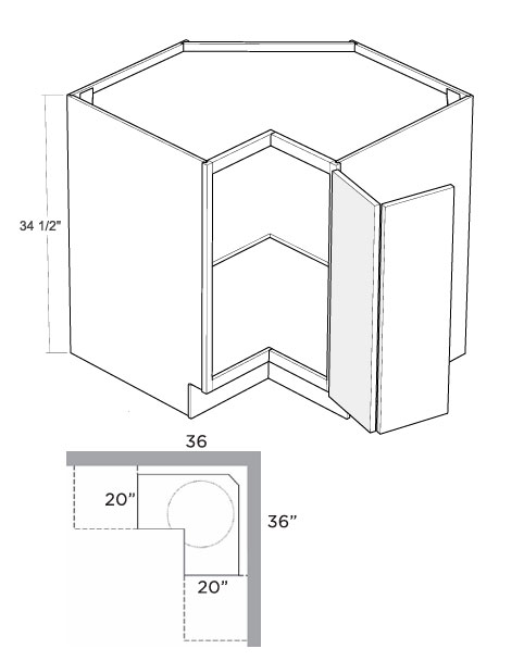 BSQC36-R: 36" Square Corner Base Cabinet (Right Hinge Door)