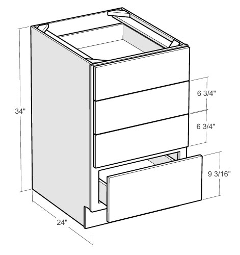 Montclair Lace DB18-4: 18" 4-Drawer Base Cabinet: Assembled Kitchen Cabinets