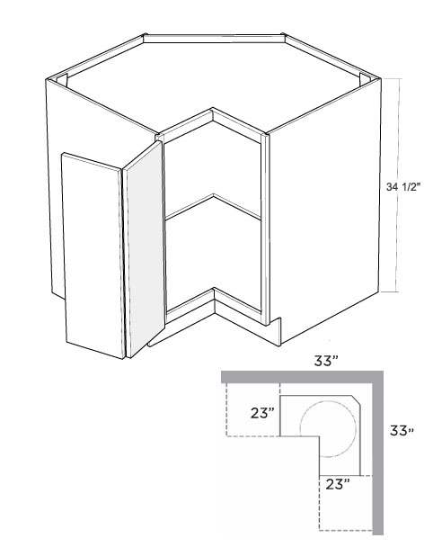 BSQC33-L: 33" Square Corner Base Cabinet (Left Hinge Door)