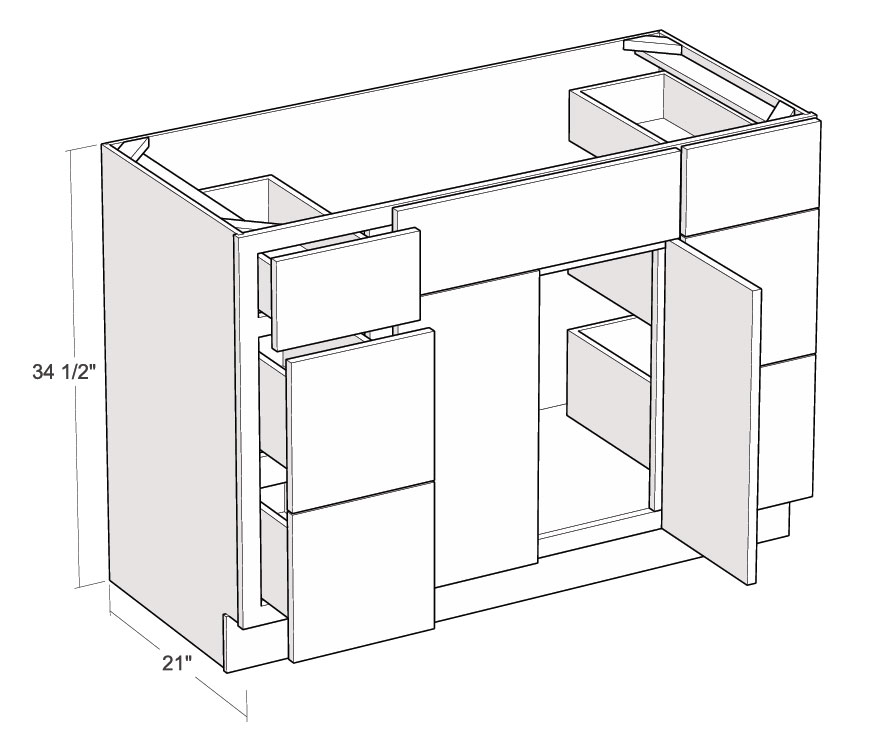 V4821DD: 21" Deep Two Door Two Drawer Vanity Sink Base Cabinet