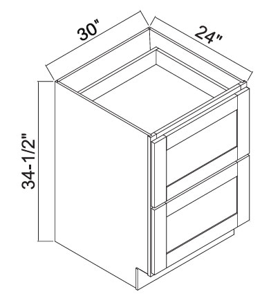 White Oak Shaker DBT30: 2 Drawer Base Cabinet: RTA Kitchen Cabinets