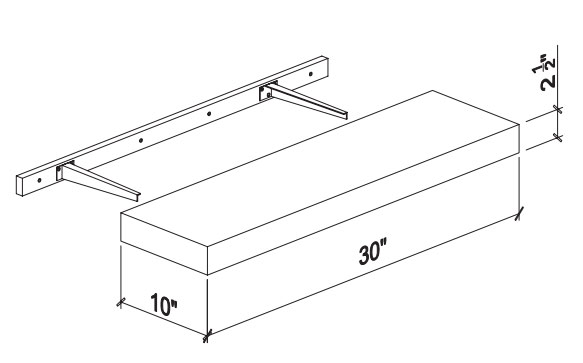 for shelves under 50"W and 3 or more for shelves more than 50"W