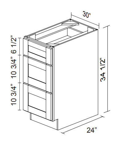 Kabinet King Royal Blue DB30-3: Three Drawer Base Cabinet: Assembled Kitchen Cabinets