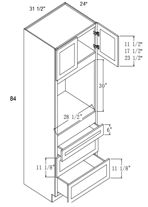 OC31 1/2 84S: Oven Cabinet Two Doors Three Drawers
