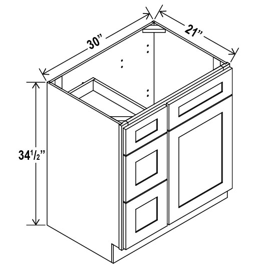 Treasure Chest V3021DL: Vanity Combo Cabinet With Left Drawers: Assembled Kitchen Cabinets