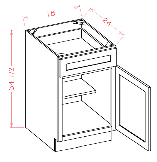 B18: Single Door, Single Drawer Base Cabinet