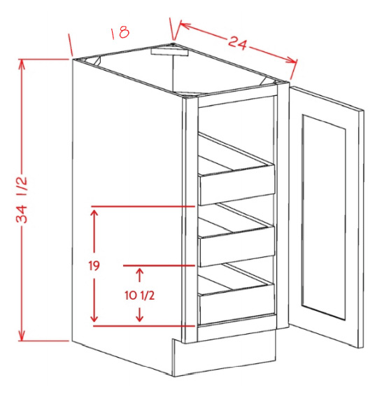B18FH3RS: Single Full Height Door, Three Rollout Shelf Base Cabinet