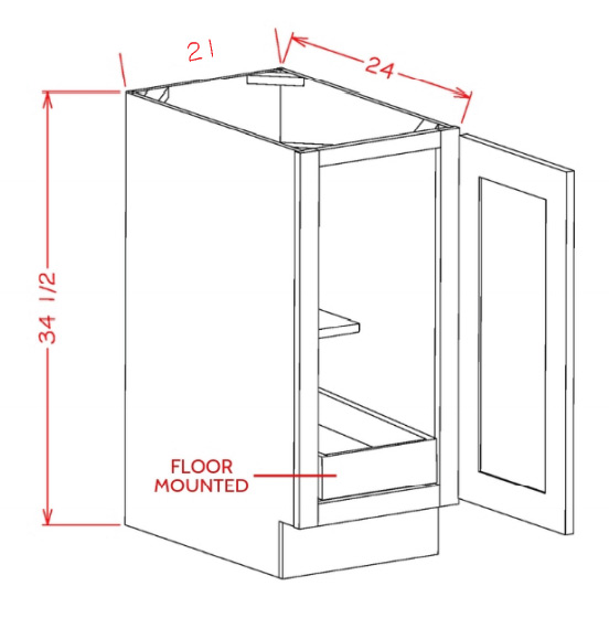 B21FH1RS: Single Full Height Door, One Rollout Shelf Base Cabinet