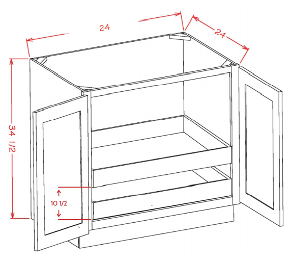 B24FH2RS: Double Full Height Door, Two Rollout Shelf Base Cabinet