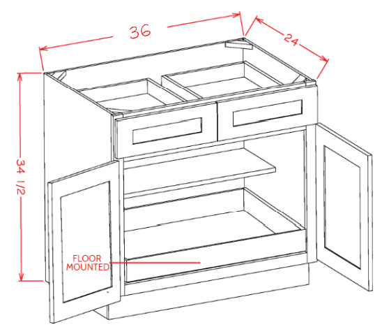 B361RS: Double Door, Double Drawer, One Rollout Shelf Base Cabinet