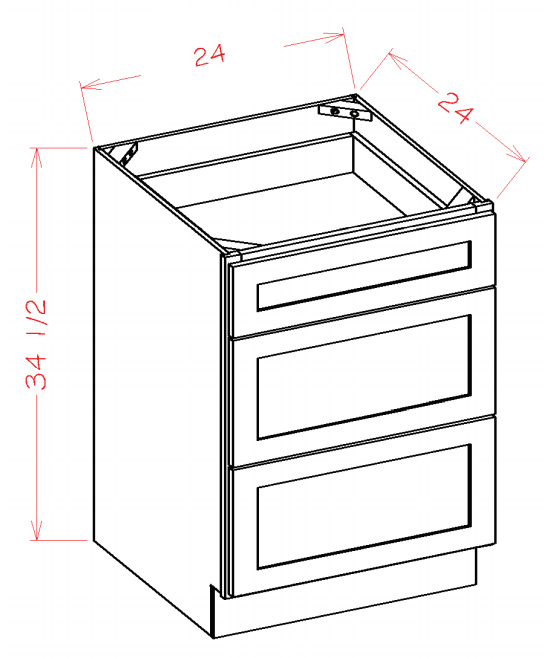3DB24: Three Drawer Base Cabinet