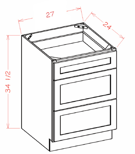 USCD Haven Ember 3DB27: Three Drawer Base Cabinet: RTA Kitchen Cabinets