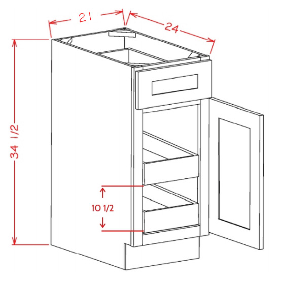 B212RS: Single Door, Single Drawer, Two Rollout Shelf Base Cabinet