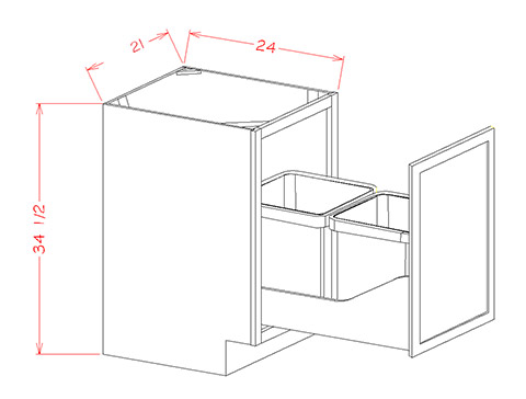 USCD Haven Ember B21FHTCPO: Full Height Door Base With Double Trash Can Pullout: RTA Kitchen Cabinets