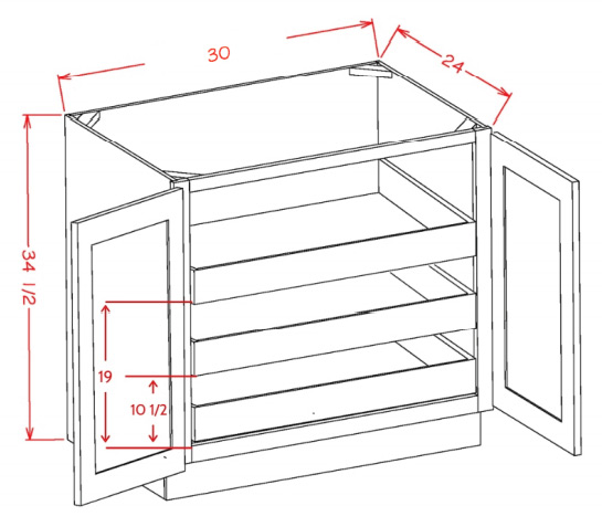 B30FH3RS: Double Full Height Door, Three Rollout Shelf Base Cabinet