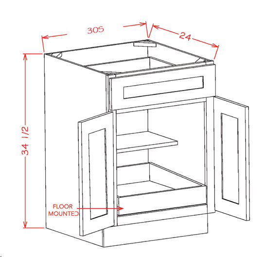 USCD Haven Ember B30S1RS: Double Door, Single Drawer, One Rollout Shelf Base Cabinet: RTA Kitchen Cabinets